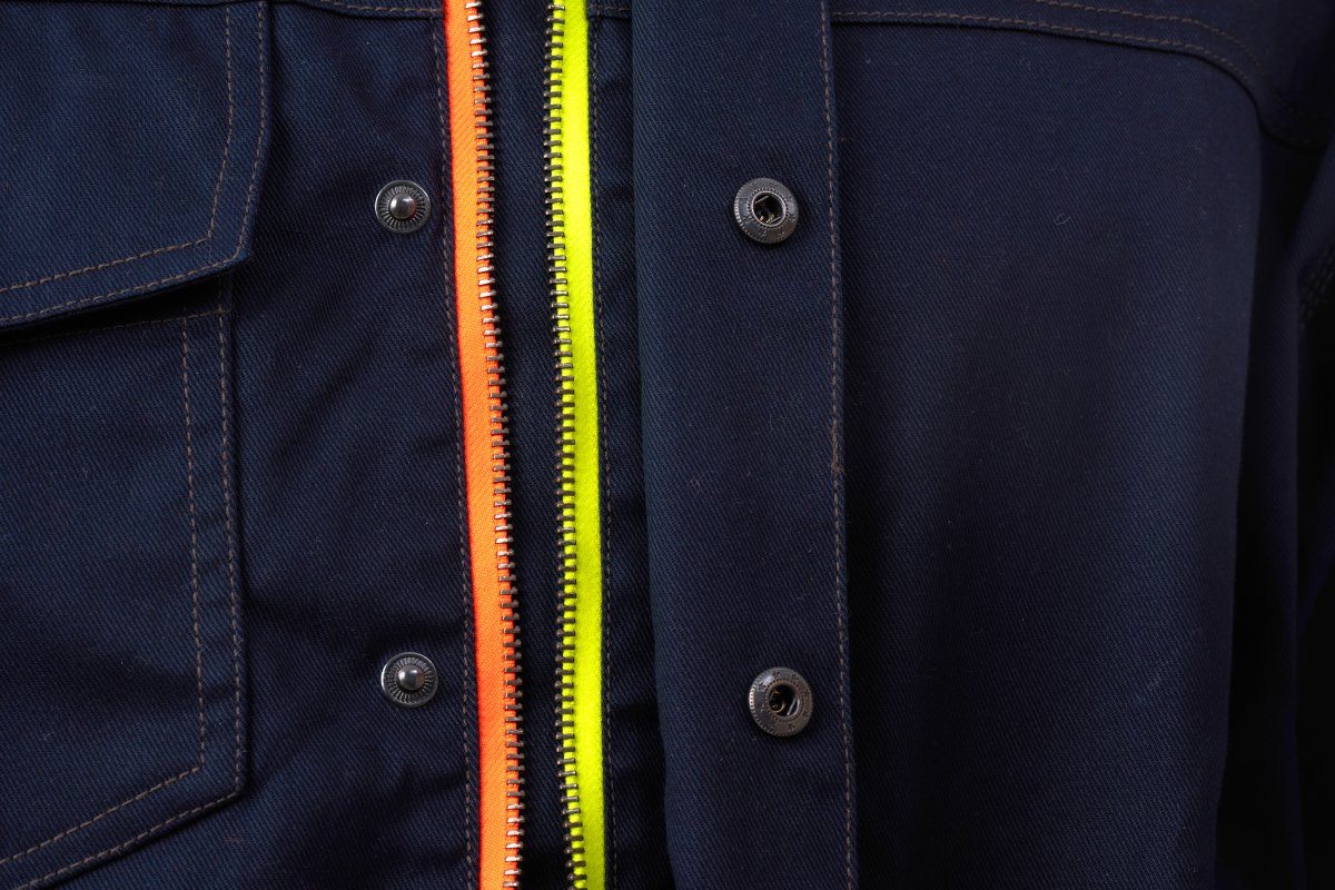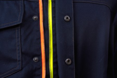 Яке без пълнеж, от антистатична тъкан, огнеустойчиво, със свойства против електрическа дъга и химически агенти, идеално за заварчици. Контрастни двойни и тройни шевове от огнеупорен конец. Закопчаване с метален двуцветен цип, покрит с капак, с вътрешна каишка и копчета тик-так. Светлоотражателни ленти на раменете, талията и ръкавите. Профилирана пришивка на лявата ръка, с етикет с обобщение на сертифициранията. Десен джоб на гърдите с подвижен държач за бадж и държач за химикал, покрит с капак със самозалепваща лента. Два предни джоба със скрит двуцветен метален цип. Пришит елемент на задната страна на яката. По-дълга профилирана задна част за по-добра защита и регулируема с външна катарама с велкро. Еластичен маншет, регулируем с катарама и самозалепваща лента. Всички видими аксесоари са устойчиви на огън. Няма метални аксесоари в пряк контакт с кожата на потребителя.