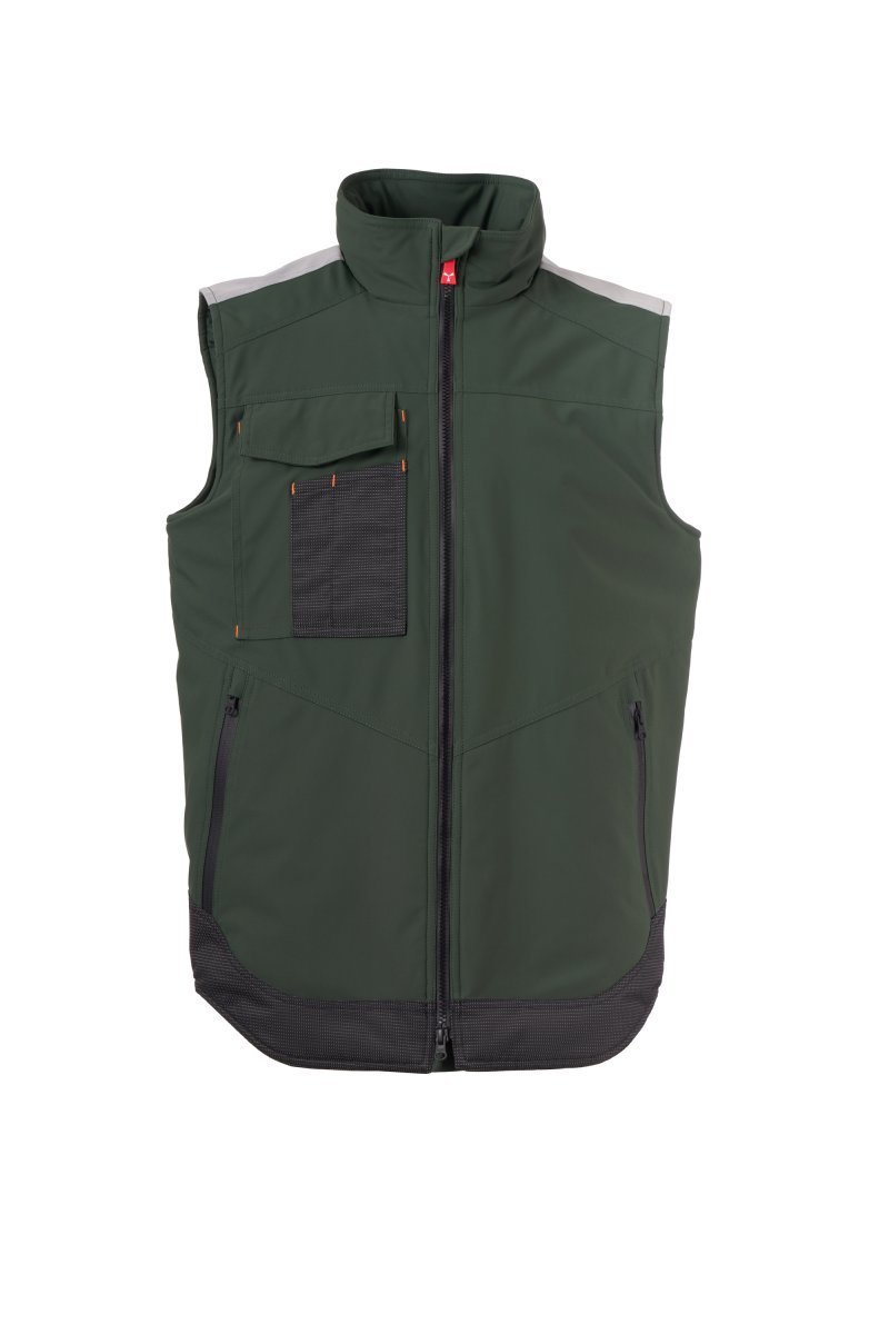 WP 8000 mm H₂O, WVT 5000 g/m² 24ч. Мъжки трислоен елек soft-shell, със среднолек пълнеж (140 g/m²), затваряне с цип SBS с метален плъзгач "semi-auto lock" и персонализирана дръжка. Светлоотразителна лента върху раменете. Джоб на гърдите Lock System с капак, държач за бадж и държач за химикал. Два странични джоба с цип от водоустойчива лента. Елемент "Life-saving" отзад, с вътрешно светлоотразително лого и затваряне с водоустойчив цип. Два вътрешни джоба, единият е профилиран и с цип върху дясната част на гърдите, а другият, отляво, е с държач за таблет, затварящ се със самозалепваща лента. Регулируема долна част на дрехата с персонализирани ограничители. Тъкан с капки със светлоотразителн ефект.