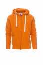 Мъжки суитшърт, цял SBS закрит цип, пластмасов, с двоен метален плъзгач, качулка с двоен шев, бяла връзка, шевове с цвят на суитшърта и метални халки, реглан ръкав, джобове тип кенгуру с джобче с цип, ластични рипсени маншети и талия. Подсилени шевове.