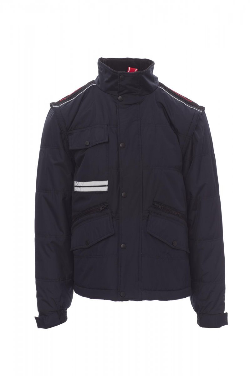 Мъжка шуба, отделящи се ръкави, пластмасов цип от 8 мм с метален плъзгач с капак и пластмасови копчета, профилирана задна част и качулка, която се сгъва в яката, два външни джоба LOCK SYSTEM и два с цип, наклон на джобовете за по-лесно пъхане на ръката, джоб на гърдите за смартфон и халка за държач на бадж, светлоотразителни ленти върху джоба и върху гърба. Отвътре: с пълнеж, контрастен полар в областта на гърба и яката, един джоб, вътрешен цип за лесно прилагане на ситопечат и бродерия.