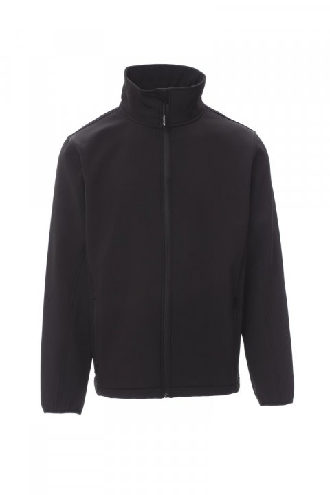 Мъжки двуслоен soft-shell, с обработка water repellent, ръкав с кръгла извивка, цип SBS с топлинно залепена лента, маншети с ластичен кант в контрастен цвят. Два странични джоба с цип.
