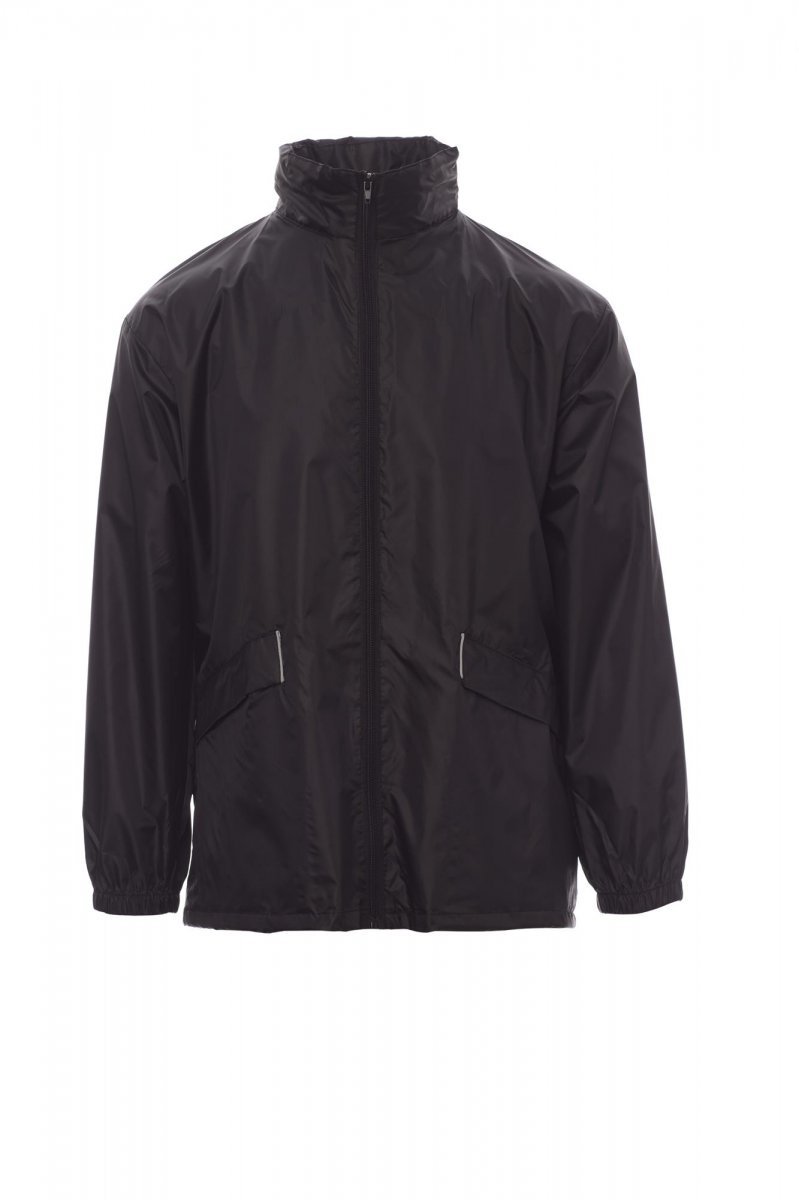 Водоустойчиво яке унисекс, с прибираща се качулка, ластик в китката, два джоба с велкро, светлоотразителни профили и вложка на гръба, отвътре: без подплата, посребрена (с изключение на модела в жълто). Индивидуално опаковани в торбичка с връзка и стопер и странична дръжка.