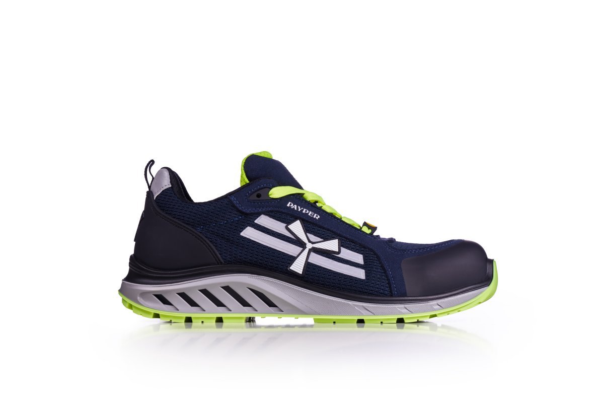 Обезопасяващи обувки със сая от материя mesh с отворена плетка, с изключително висока дишаемост. Дишаща и устойчива на триене вътрешна подплата. Подсилен TPU предпазител за петата и защита против търкане на пръстите. По-леко и по-устойчиво бомбе от фибростъкло. Изключително лека пластина против пробиване. Подвижна стелка Pulsar Cushioning от полиуретан с двойна плътност и система от отворени клетки, ергономична, антистатична и ударопоглъщаща. Междинна подметка, изработена от ултралека полиуретанова смес с двойна плътност. Първата междинна подметка осигурява омекотяване на ударите и дълготраен комфорт, втората междинна подметка осигурява стабилност и опора. Протектор TPU, ултра устойчив на хидролиза и износване. Обезопасяващи обувки ESD.