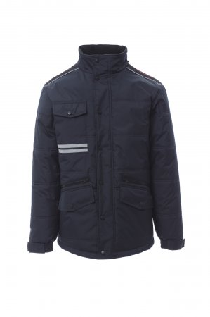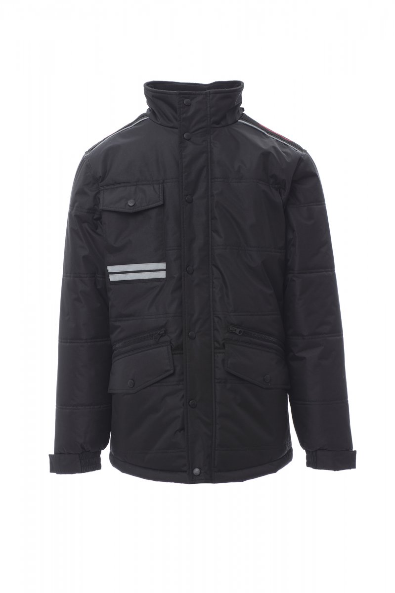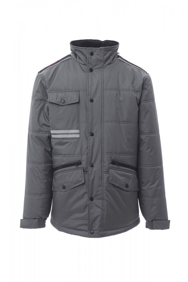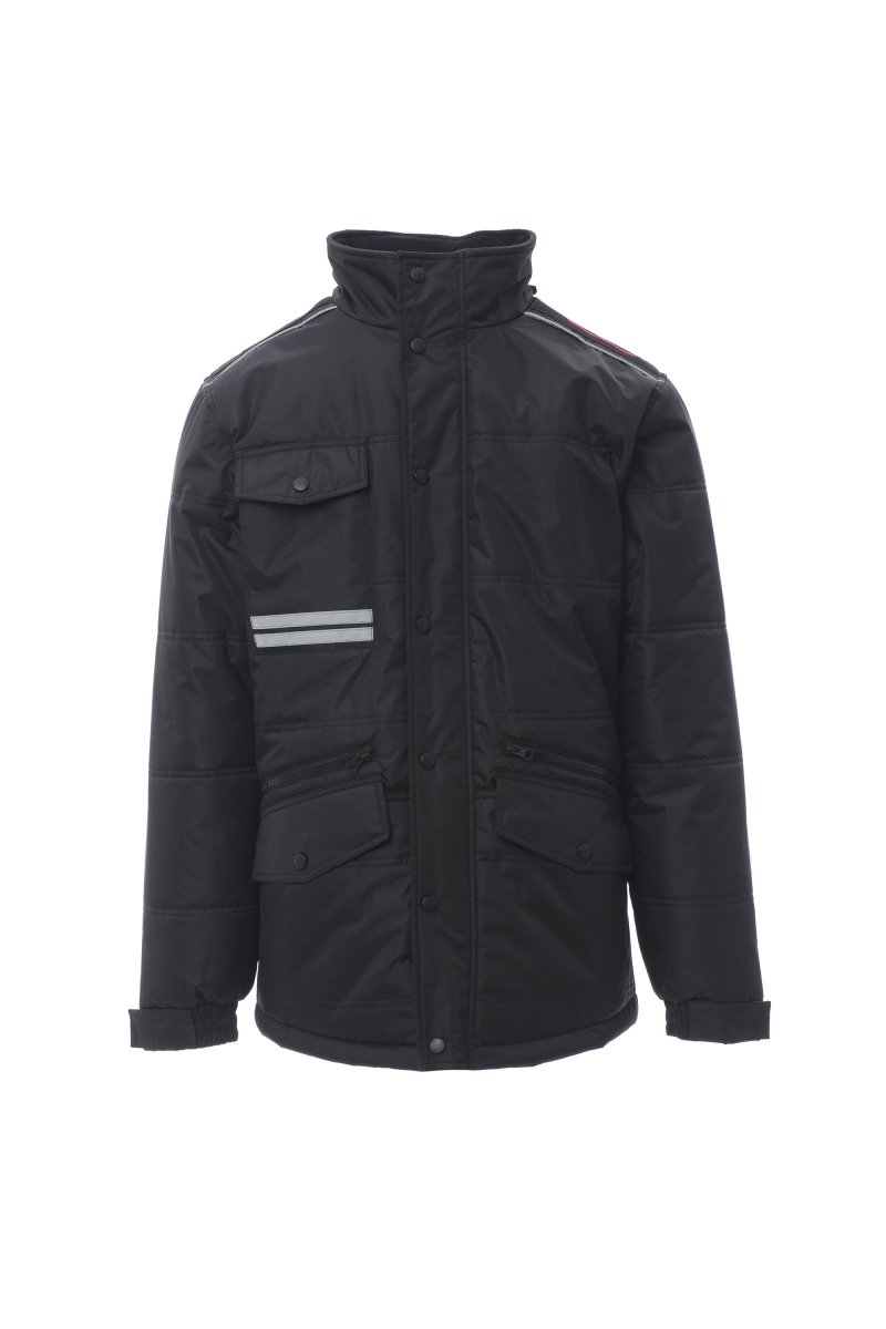 Muška jakna (3/4) s plastičnim patentnim zatvaračem od 8 mm s metalnim klizačem s preklopom i plastičnim dugmadima, formiranim zadnjim dijelom i kapuljačom sklopivom u okovratnik, dva vanjska džepa s patentiranim sistemom zatvaranja „LOCK SYSTEM”, dva džepa s patentnim zatvaračima, nakrivljenim džepovima za jednostavniji pristup, jednim džepom na prsima za pametni telefon i držačem za značke, reflektujućim trakama na džepu i leđima. Unutrašnjost: podstavljena, flis različite boje na leđima i vratu, džep, unutarnji patentni zatvarač za lakše postavljanje otisnutih grafika i vezenog materijala.
