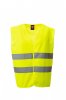 Prsluk visoke vidljivosti potpuno porubljen s retroreflektujućim trakama, dvostrukim šavovima i zatvaranjem na čičak.