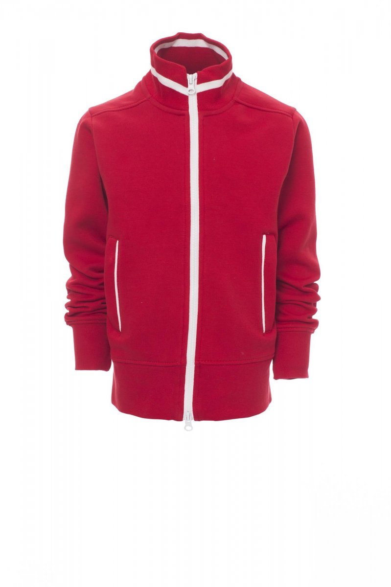 Dječja majica s plastičnim patentnim zatvaračem SBS pune dužine i kontrastnih boja s dvostrukim metalnim klizačem, rebrastim okovratnikom, kontrastnim obrubom na okovratniku i na bočnim džepovima, pripijenim rukavima, dva vanjska džepa s kontrastnim patentnim zatvaračem, rastegljivim rebrastim manžetnama i porubom te pojačanim šavovima.