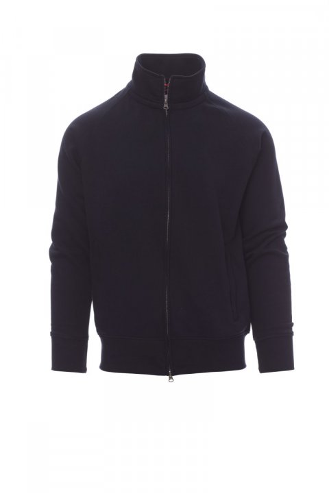 Muška dukserica s prekrivenim plastičnim patentnim zatvaračem SBS pune dužine s dvostrukim metalnim klizačem, raglan rukavima, dva džepa s prekrivenim patentnim zatvaračem, rastegljivim rebrastim manžetnama i porubom, pojačanim šavovima.