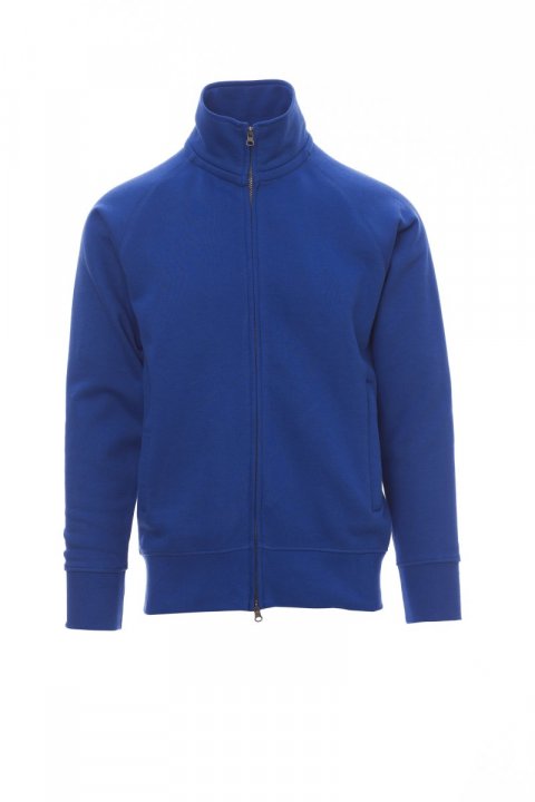 Muška dukserica s prekrivenim plastičnim patentnim zatvaračem SBS pune dužine s dvostrukim metalnim klizačem, raglan rukavima, dva džepa s prekrivenim patentnim zatvaračem, rastegljivim rebrastim manžetnama i porubom, pojačanim šavovima.