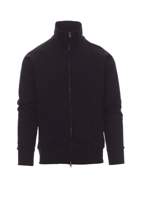 Muška dukserica s prekrivenim plastičnim patentnim zatvaračem SBS pune dužine s dvostrukim metalnim klizačem, raglan rukavima, dva džepa s prekrivenim patentnim zatvaračem, rastegljivim rebrastim manžetnama i porubom, pojačanim šavovima.
