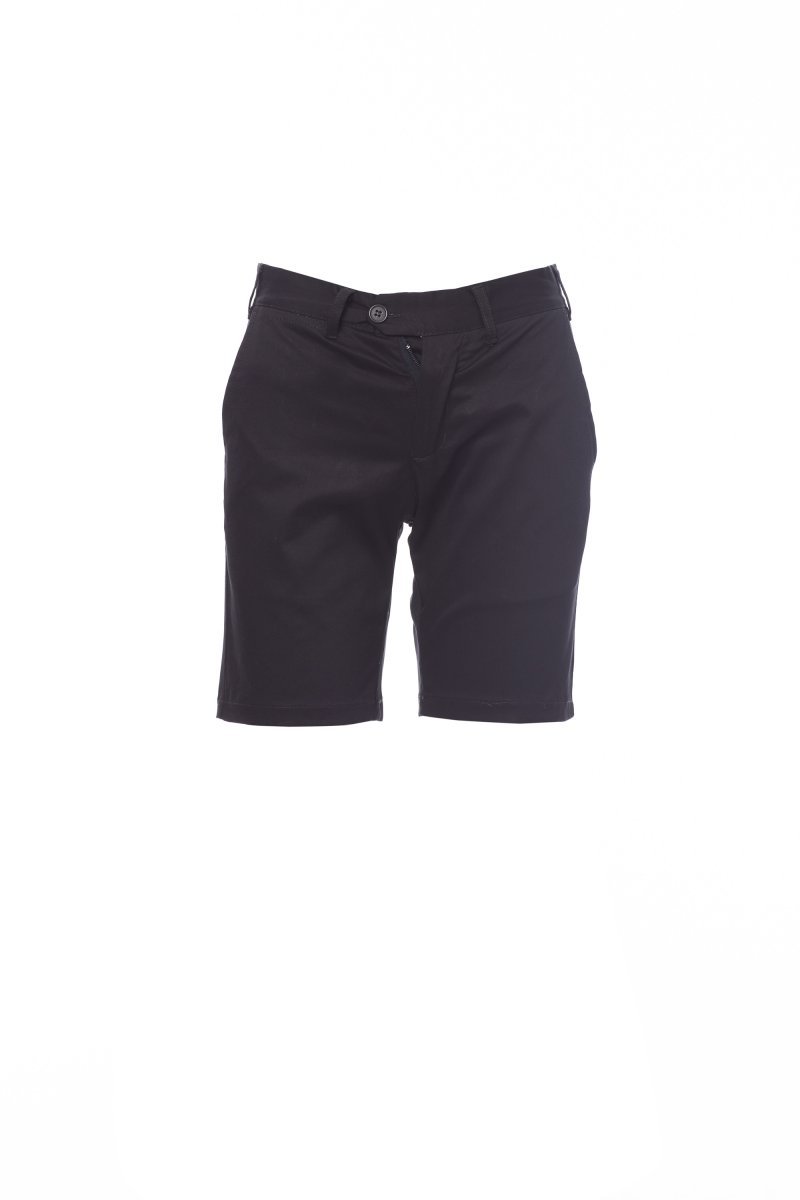 Zenske klasične bermude s francuskim džepovima, patentnim zatvaračem i dugmetom za zatvaranje, petljama za pojas oko struka, dva ravno rezana zadnja džepa s dugmadima.