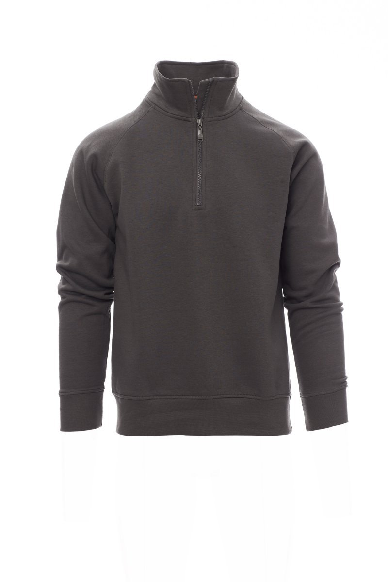Pánská mikina s barevně sladěným plastovým polozipem s kovovým jezdcem, raglánové rukávy, manžety a pas s elastickým žebrováním, zesílené švy.