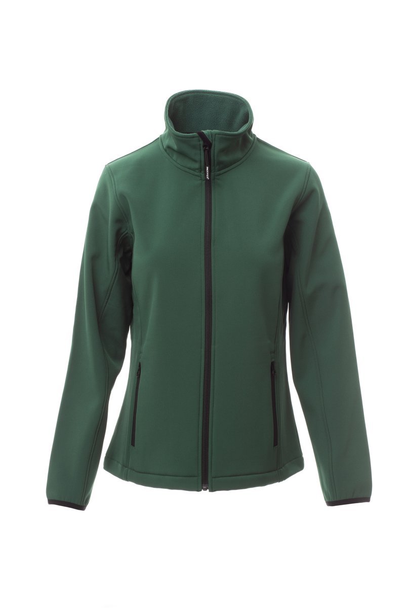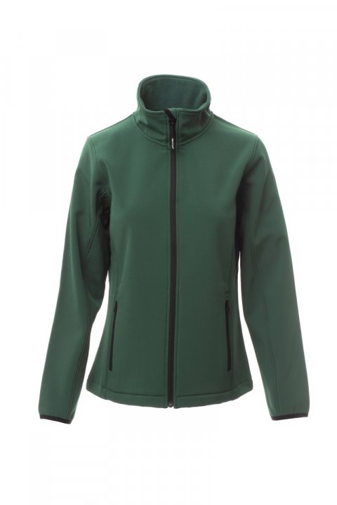 Dámský softshell 2 vrstvy, s vodoodpudivou úpravou, všívaný rukáv, zapínání na páskový zip SBS. Manžety s jemným pružným lemováním. Dvě boční kapsy na zip.