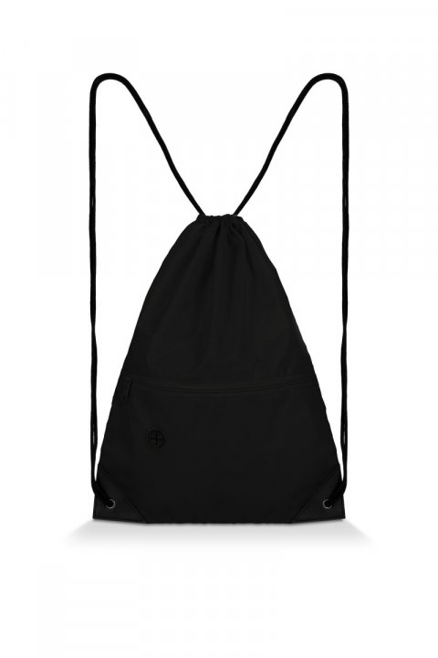 Justerbar snørepose, udstyret med en udvendig lomme, med udgangshul til hovedtelefoner, lukkes med lynlås, til at holde småting for sig selv og ved hånden. Forstærkede nederste hjørner og øjer. Mål: 43 x 34 cm. Kapacitet 12 l. Mindste salgbare enhed: 10 enheder.