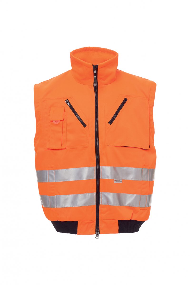 Gut sichtbare Jacke mit 3M-Streifen, abtrennbare Ärmel, 8 mm 2-Wege-Reißverschluss aus Kunststoff mit Metallschieber, elastische Taille und Ärmelbündchen, 2 Vordertaschen mit Reißverschluss, 2 Brusttaschen mit Reißverschluss, Smartphone-Tasche, 1 Außenreißverschluss auf der linken Brustseite zum einfacheren Veredeln mit Druck und Stick, 1 multifunktionale Armtasche. Innenseite: Fleece, 1 Innentasche, Reißverschluss zum einfacheren Veredeln mit Druck und Stick.