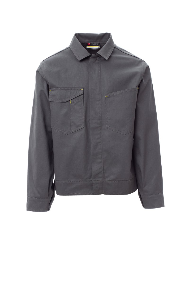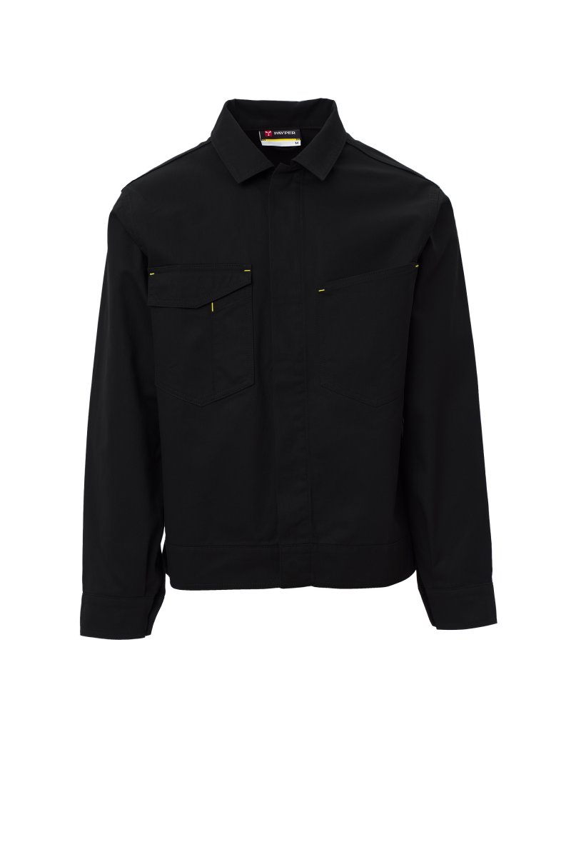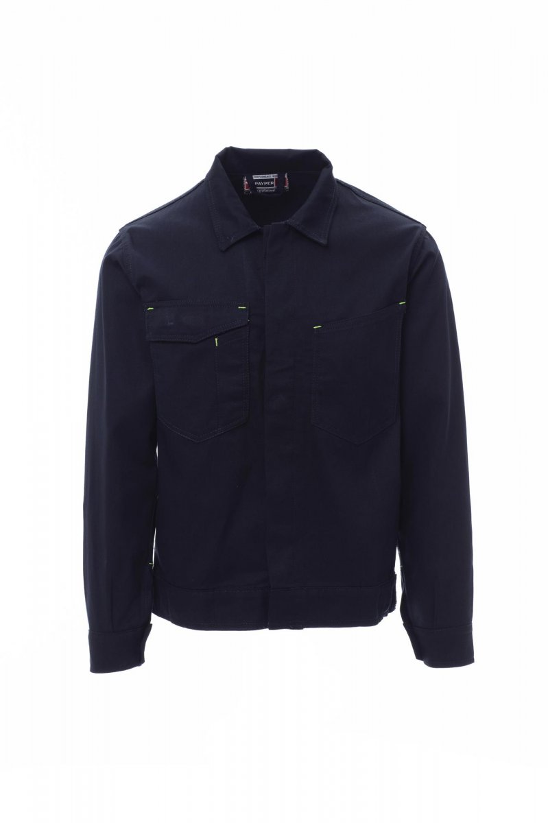 Μη παραγεμισμένο τζάκετ με μεσάτη γραμμή σχεδίου τζιν, μπροστινό κλείσιμο, με καλυμμένα πλαστικά κουμπιά· δυο τσέπες στο στήθος από τις οποίες μια με θήκη smartphone, θήκη κάρτας, θήκη στυλό και καπάκι κλεισίματος με velcro· κλείσιμο στη μανσέτα με κουμπί και μέση ρυθμιζόμενη με velcro. Χωρίς εσωτερική φόδρα.
