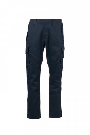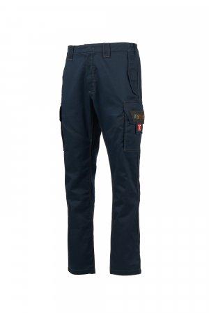 Παντελόνι από αντιστατικό ύφασμα, πυρίμαχο, με ιδιότητες ανθεκτικές στο ηλεκτρικό τόξο και σε χημικούς παράγοντες, ιδανικό για συγκολλητές. Κοντράστ διπλή και τριπλή ραφή με πυρίμαχο νήμα. Ζώνη διαμορφωμένη, πιο ψηλή στο πίσω μέρος, για καλύτερη κάλυψη, με πλαϊνά λάστιχα και θηλιές στη μέση. Κλείσιμο με δίχρωμο μεταλλικό φερμουάρ καλυμμένο από καπάκι και κουμπί σούστα. Μπροστινές τσέπες με καπάκι και αυτοκόλλητο κλείσιμο. Μεγάλες πλαϊνές τσέπες με πιέτα, από τις οποίες μία με διαμορφωμένο καπάκι με αυτοκόλλητο κλείσιμο, δίχρωμο εσωτερικό μεταλλικό φερμουάρ, συνοπτική ετικέτα των πιστοποιήσεων. Δύο πίσω τσέπες με καπάκι και αυτοκόλλητο κλείσιμο, από τις οποίες μία με αντανακλαστικές λωρίδες. Όλα τα ορατά αξεσουάρ είναι ανθεκτικά στις φλόγες. Δεν έρχεται κανένα μεταλλικό αξεσουάρ σε απευθείας επαφή με το δέρμα του χρήστη.