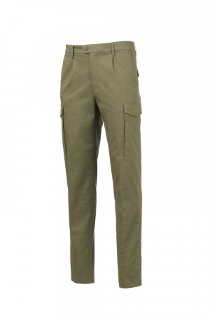 Παντελόνι chino, καλοκαιρινό, από καμπαρντίνα stretch, contemporary fit, με θηλιές ραμμένες στη μέση, κλείσιμο με φερμουάρ και μετατόπιση κουμπώματος με 2 κουμπιά. 2 γαλλικές τσέπες, 2 πλαϊνές τσέπες εφαρμοσμένες με καπάκι και αυτόματο κουμπί. 2 πίσω τσέπες με καπάκι και αυτόματο κουμπί. Πριτσίνι σε σχήμα έλικας στον δεξιό γοφό.
