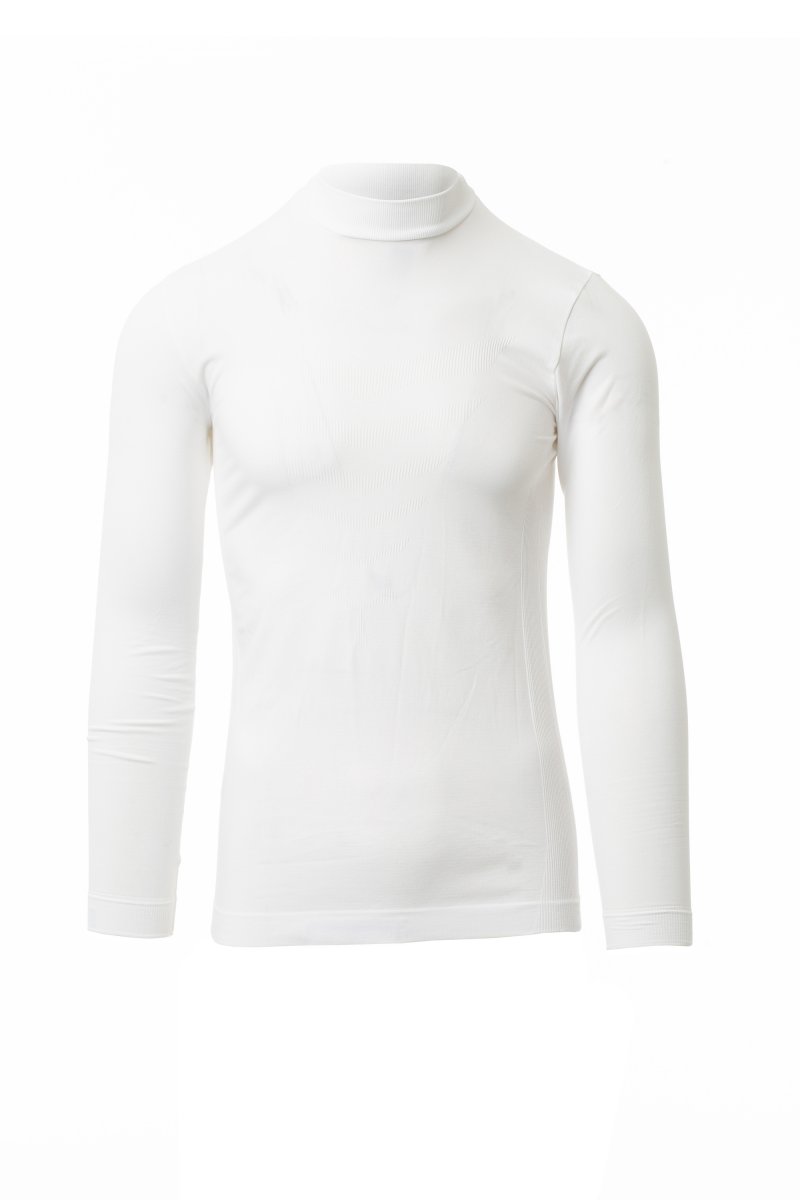 Technical inset long-sleeved sweater with mock polo neck in breathable and stretch fabric. Tubular structure, with slim fit. Weaves on chest, hips and back. Propeller motif on the front.