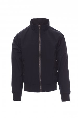Men’s jacket, 8 mm plastic zip with metal pull, elasticated rib waist and cuffs, two outer pockets with plastic zip. Unpadded, mesh lining interior, one zip pocket for smartphone with opening for headphones, zip on the back and chest for easier printing and embroidery.