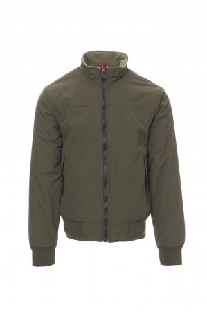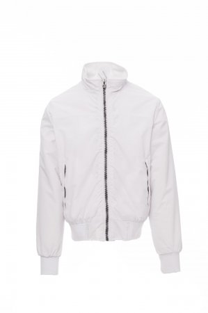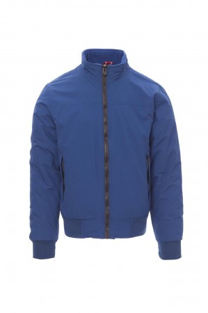 Men’s jacket, 8 mm plastic zip with metal pull, elasticated rib cuffs and waist, two outer pockets with concealed zip. Inside: padded, micro-fleece on the collar and back, one zip pocket for smartphone with opening for headphones, zip on the chest and back for easier printing and embroidery.