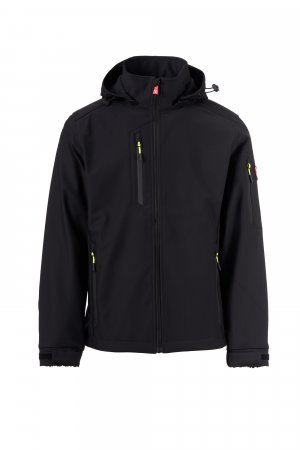 WP 8000 mm H₂O, WVT 5000 g/m² 24h. Men's 3-layer lightweight soft-shell, SBS zip closure with "semi-auto lock" metal slider and customised pull. Removable hood with adjustable drawstring. Retroreflective stripes on lower back and back of the hood. Elasticated cuffs, adjustable with hook-and-loop fastener. Two side pockets with zip, a chest pocket with coated zip and a pocket on the left arm with integrated pen holder, closed with a zip. Fluorescent pulls. One internal welt pocket with hook-and-loop fastener. Adjustable bottom with customised stoppers.