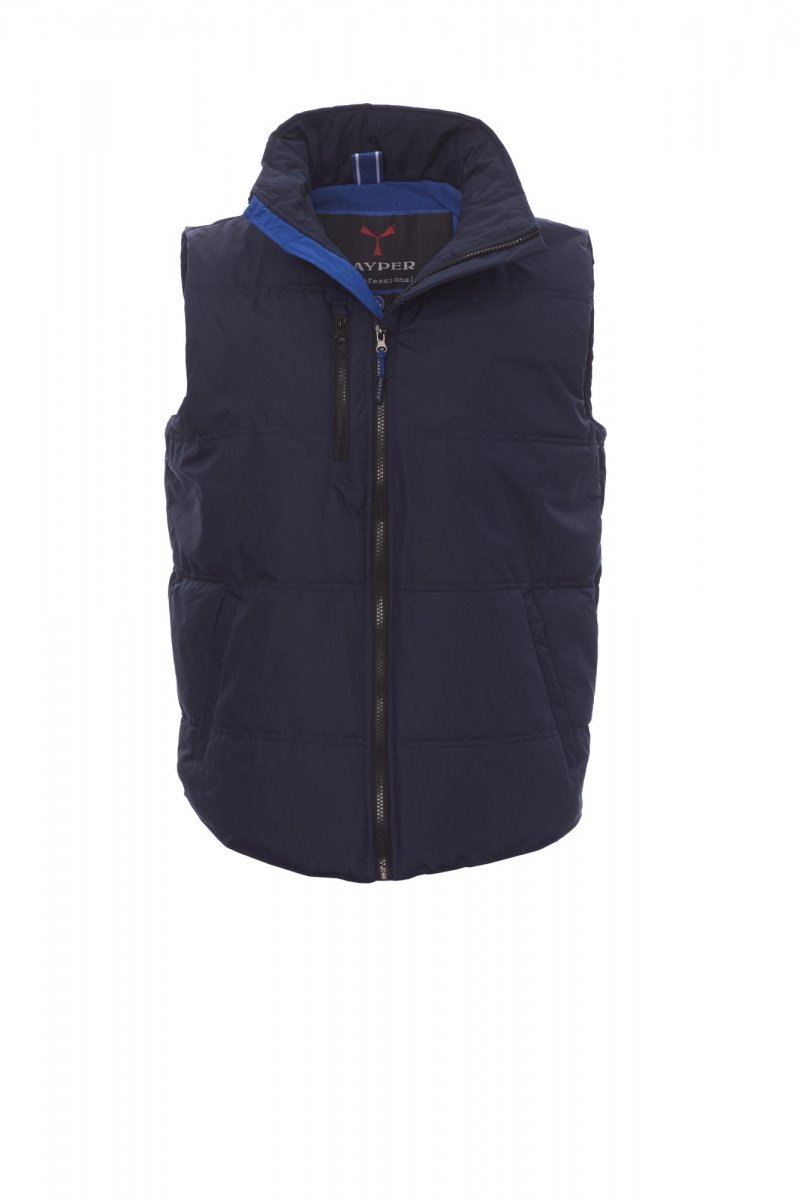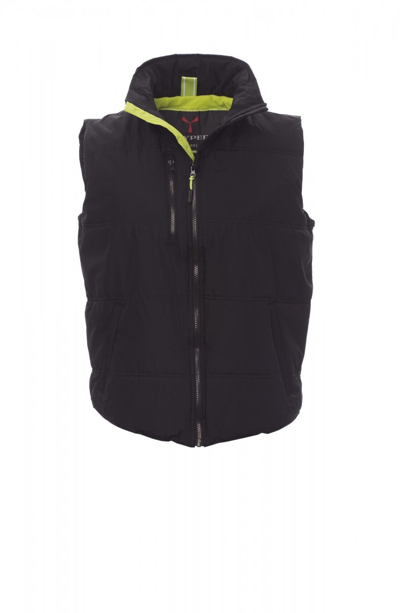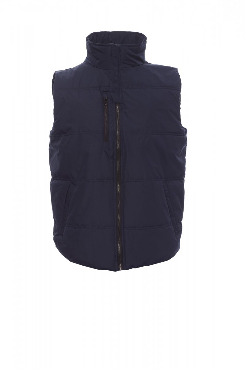 Padded vest (160g/m²), with contrasting microfleece, 8mm plastic zip with metal pull. Two side pockets and one chest pocket with zip.