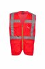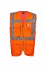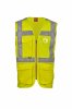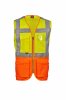 High visibility vest in dry-tech fabric, with horizontal retroreflective stripes on the shoulders, chest and waist and two vertical retroreflective stripes. Zip closure, with two-tone tape. Fixed badge holder on the left chest when worn. Multipurpose loop, pen holder pocket closed with hook-and-loop fastener and a ring on the right chest when worn. Two external bellows pockets closed with hook-and-loop fastener and side opening at the bottom.