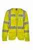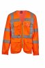 High visibility, long-sleeved jacket-style vest in dry-tech fabric. Horizontal retroreflective stripes on the shoulders, chest and waist and two vertical retroreflective stripes. Zip closure, with two-tone tape. Fixed badge holder on the left chest when worn. Multipurpose loop, pen holder pocket closed with hook-and-loop fastener and a ring on the right chest when worn. Two bellows pockets closed with hook-and-loop fastener and side opening at the bottom.
