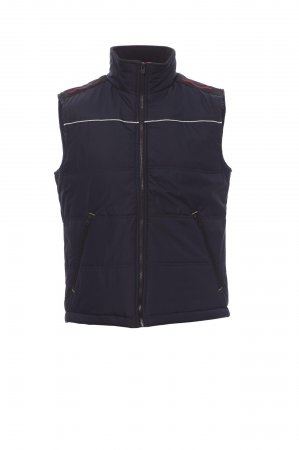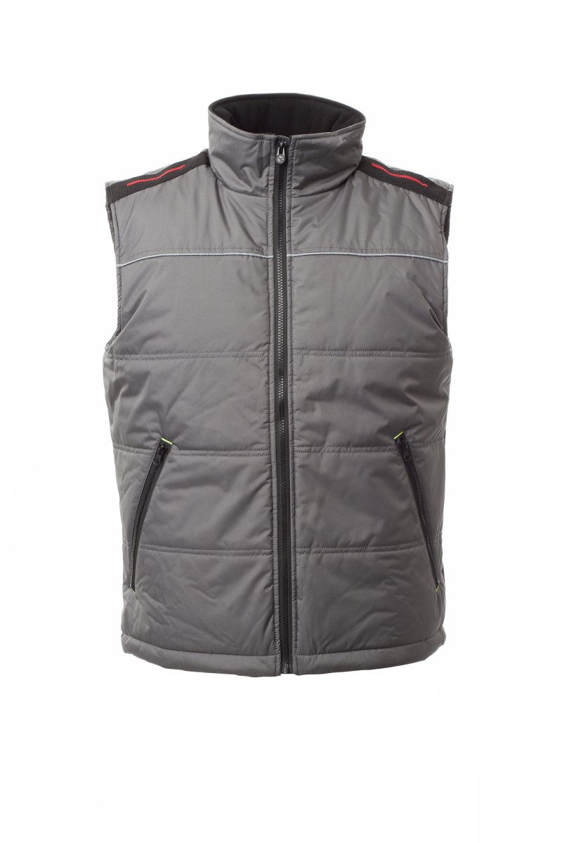 Unisex vest, 5 mm plastic zip with metal pull, contoured back, two roomy outer pockets with zip, reflex piping on the chest and back. Padded, high-density lining, inner fleece collar, one inner pocket.