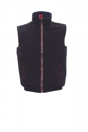 Unisex vest, contrasting 8 mm zip, elasticated hem, two outer pockets with concealed zip. Padded, micro-fleece lining on the inside collar and back, one inner zip pocket for headphones and smartphone headphones, zip on the chest and at the bottom for easier printing and embroidery.