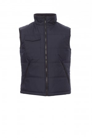 Quilted vest with contoured back and padding, finished with high density lining, inner fleece collar. Two large pockets with zip, smartphone breast pocket and one inner pocket.