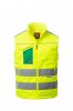 High visibility unisex padded vest, with retroreflective stripes on shoulders and body. Fastening with “semi-auto lock” metal zip and customised pull. One multipurpose two-tone chest pocket with badge holder ring and LOCK SYSTEM flap closure. Two external pockets with zip. Polar fleece inner collar. One inside pocket with Velcro.