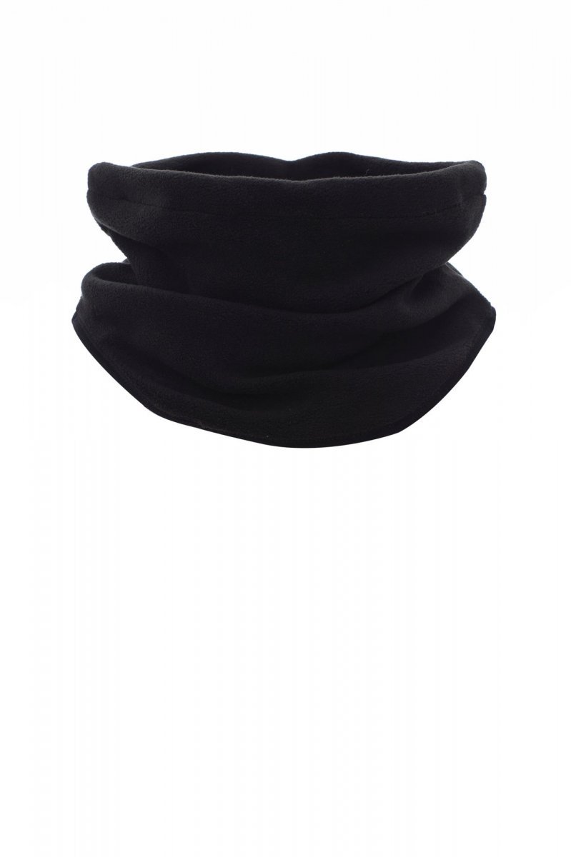 Micro fleece shaped neckwarmer with drawstring.