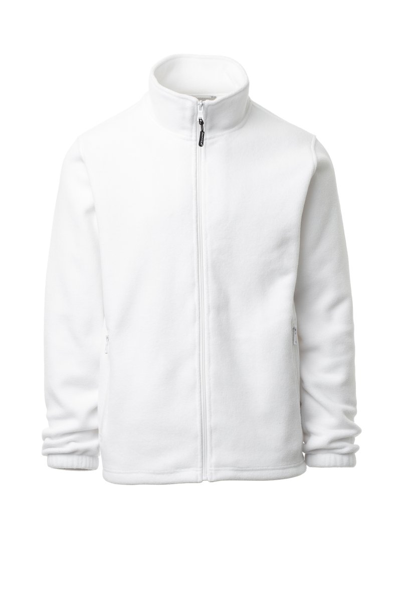 Fleece, with full nylon zip and single pull, fitted sleeves, elasticated cuffs, two pockets with concealed zip, reinforced seams, straight bottom.