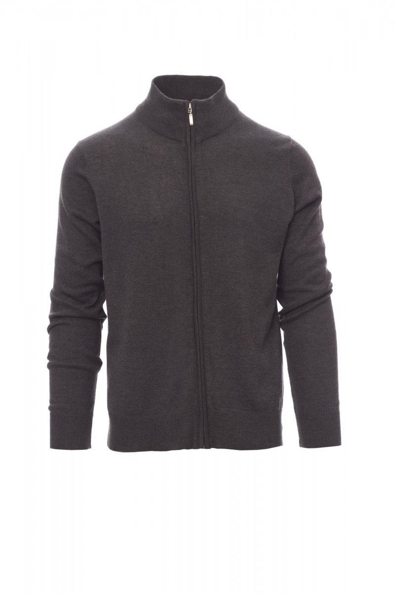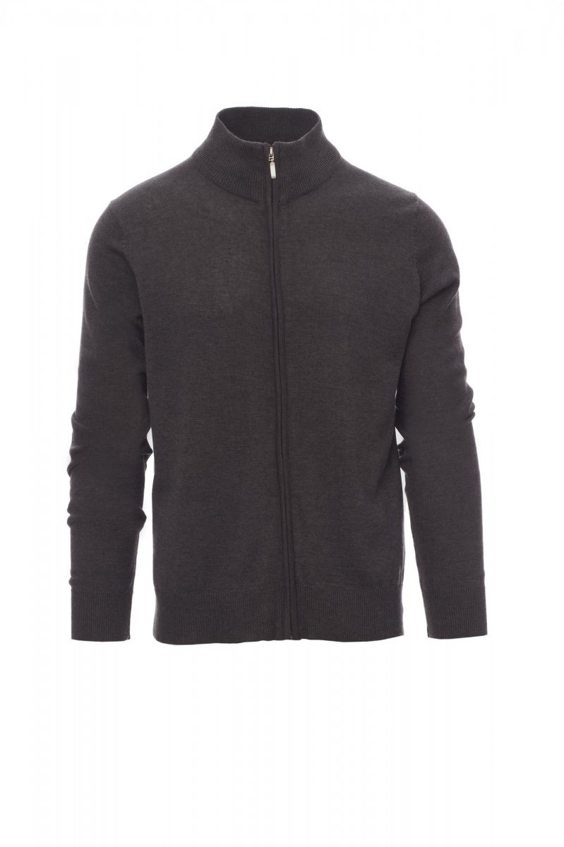 Unisex full zip jumper in stocking stitch, fully fashioned without seams, fine rib collar, cuffs and bottom edges, with elbow patches.