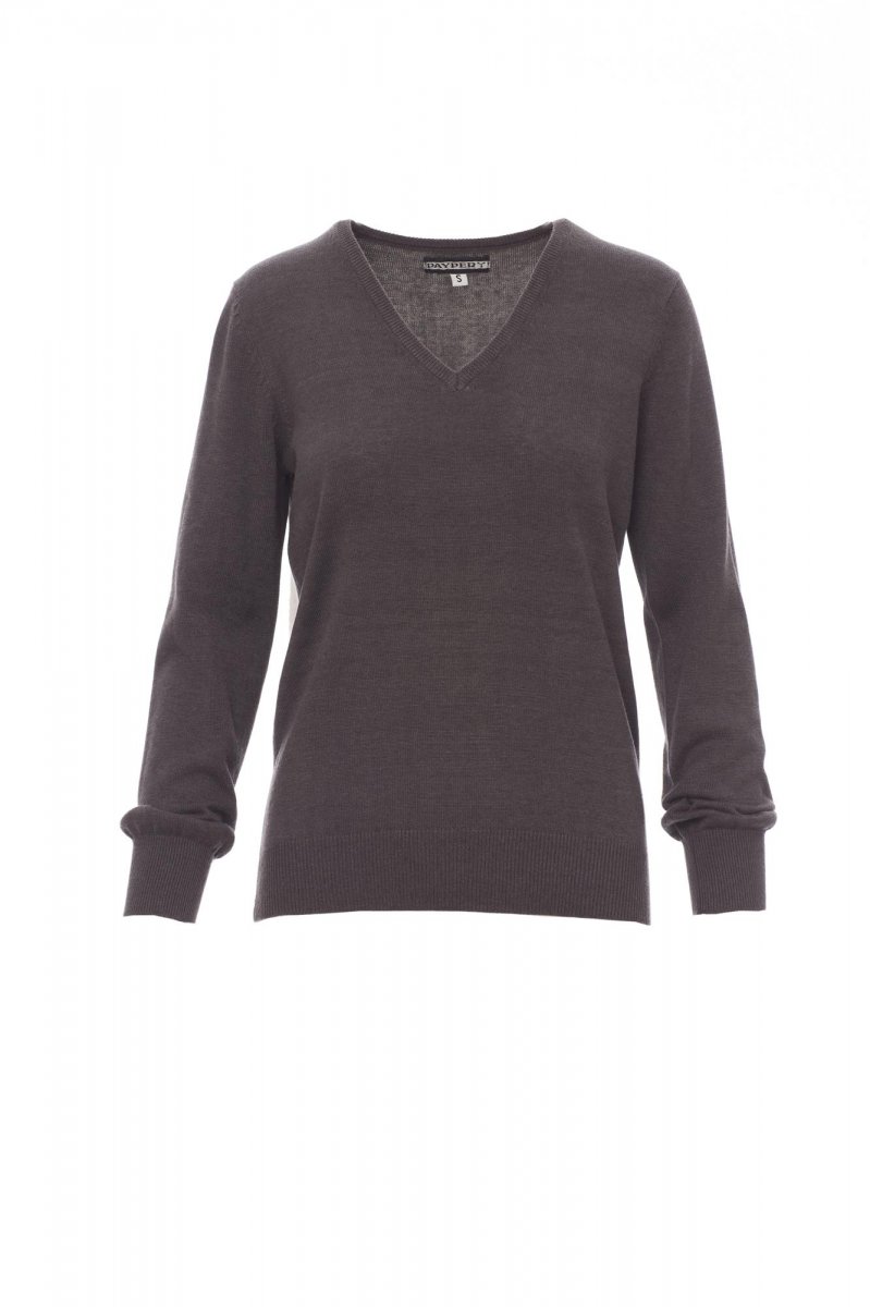 Women’s V-neck jumper in stocking stitch, fully fashioned without seams, fine rib collar, cuffs and bottom edges.
