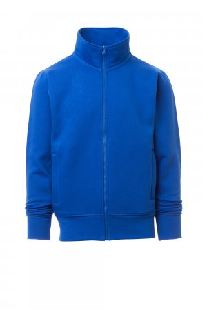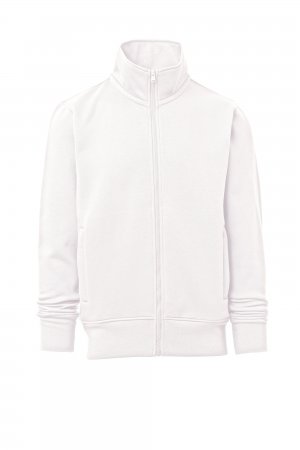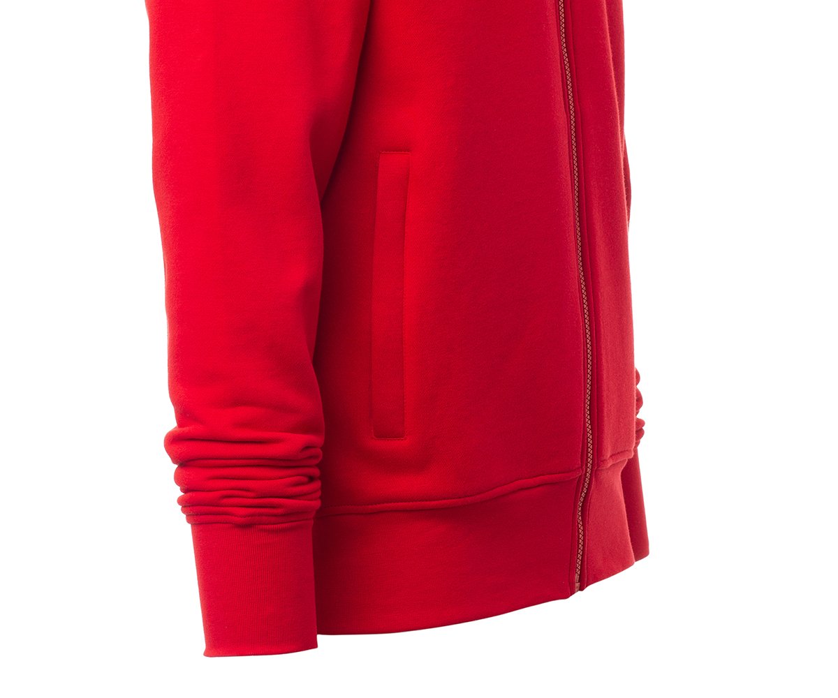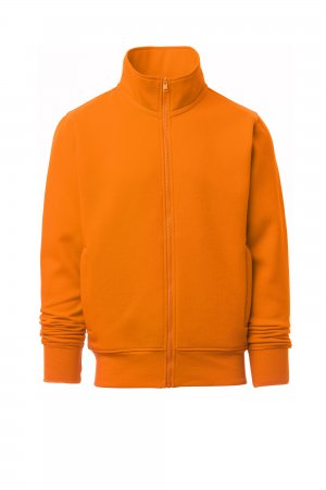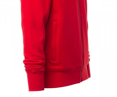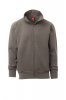 Men’s sweatshirt, with matching full zip in plastic with single customised pull, fitted sleeves, two welt pockets with zip, stretch rib cuffs and hem, reinforced seams, matching inner neck tape reinforcement.