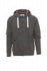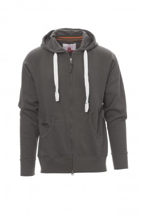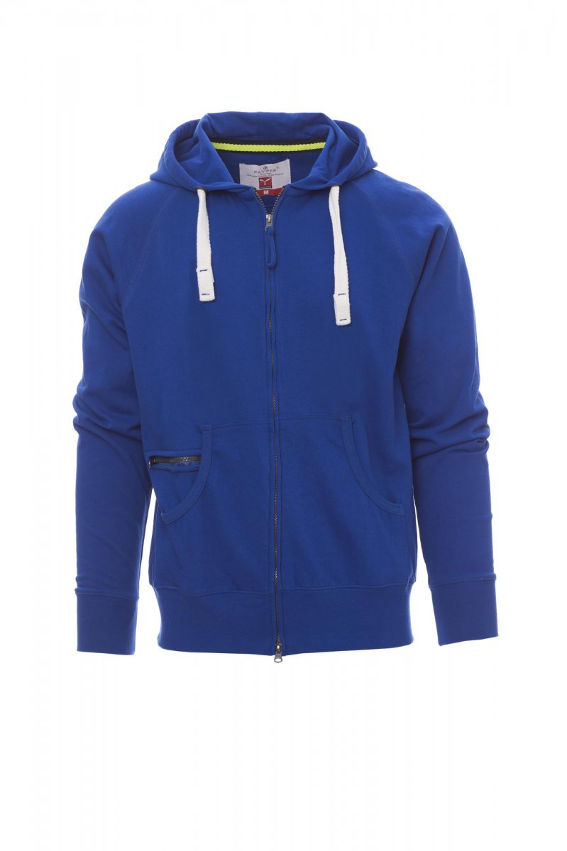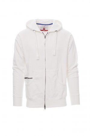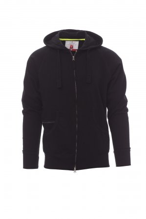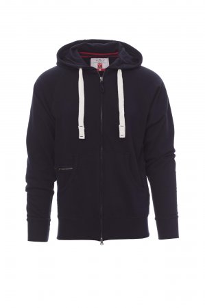 Men’s hoodie with full, covered SBS zip with double metal pull, hood with double stitched seams and white drawstring with contrasting stitching and metal rings, raglan sleeves, kangaroo pockets, small zip pocket, stretch rib cuffs and hem, reinforced seams.