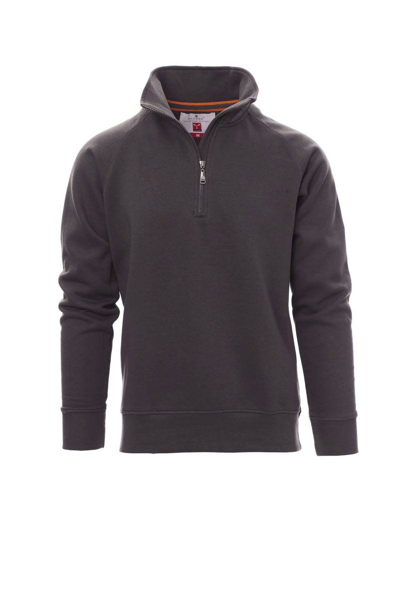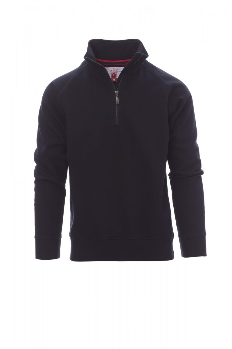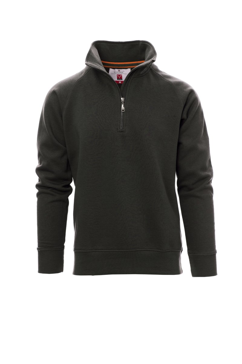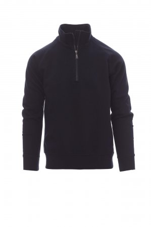 Men’s sweatshirt, with matching half zip in plastic with metal pull, raglan sleeves, stretch rib cuffs and hem, reinforced seams.