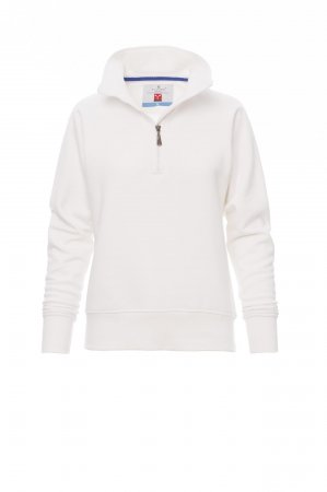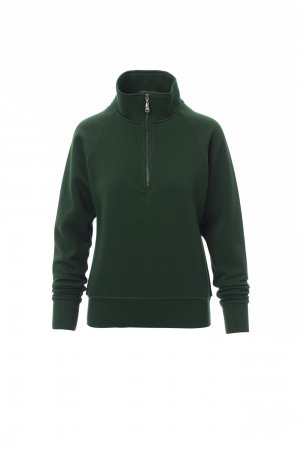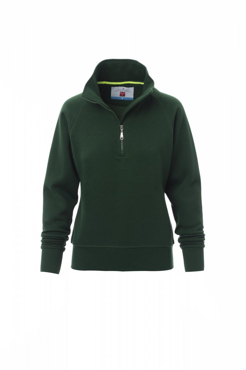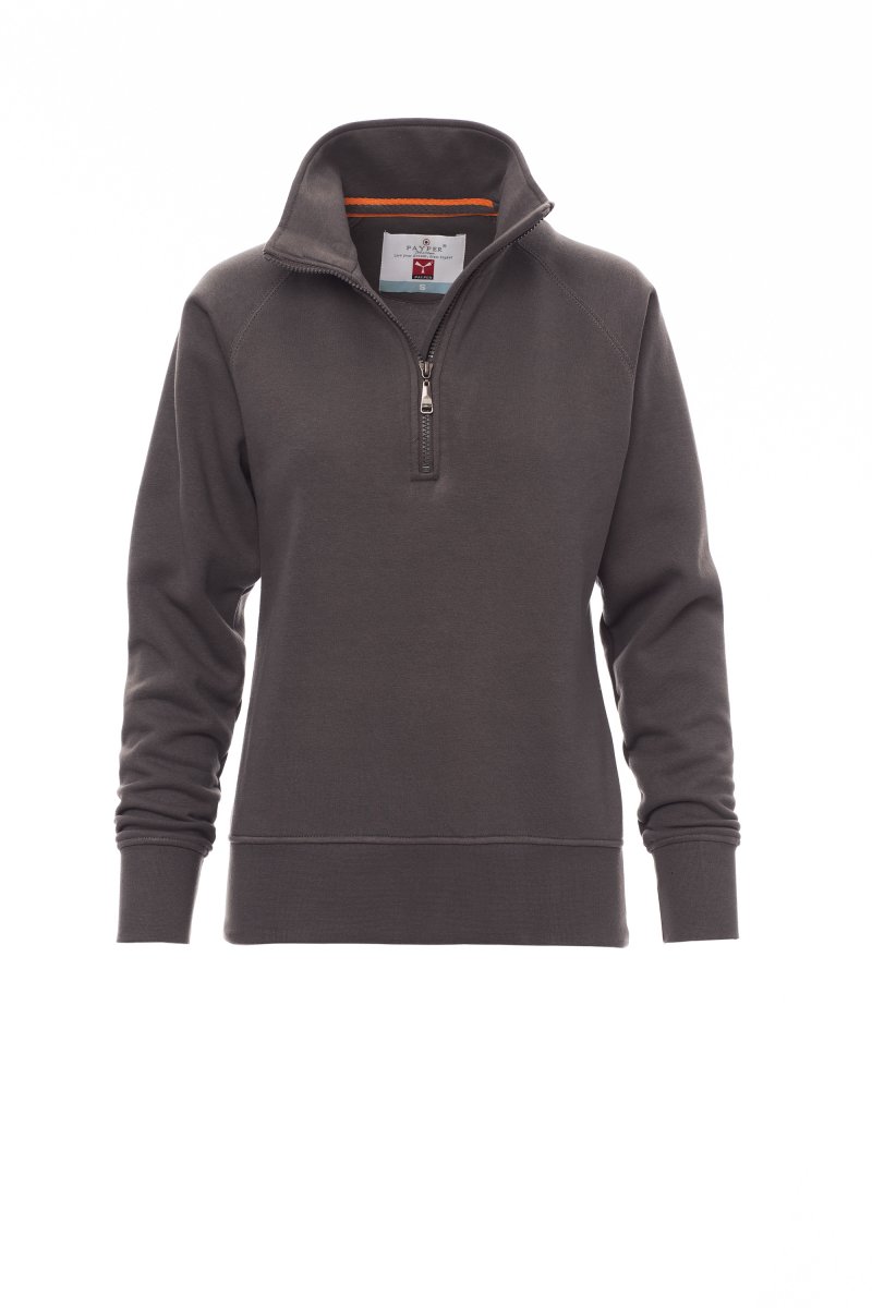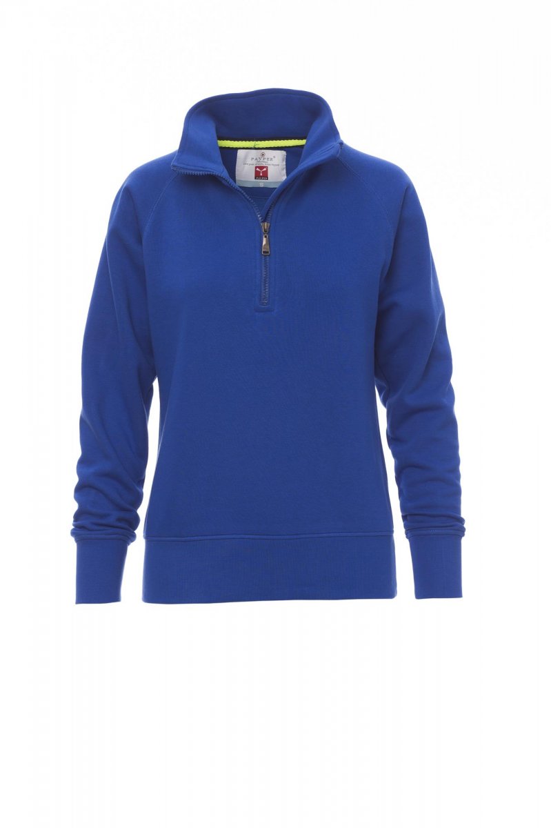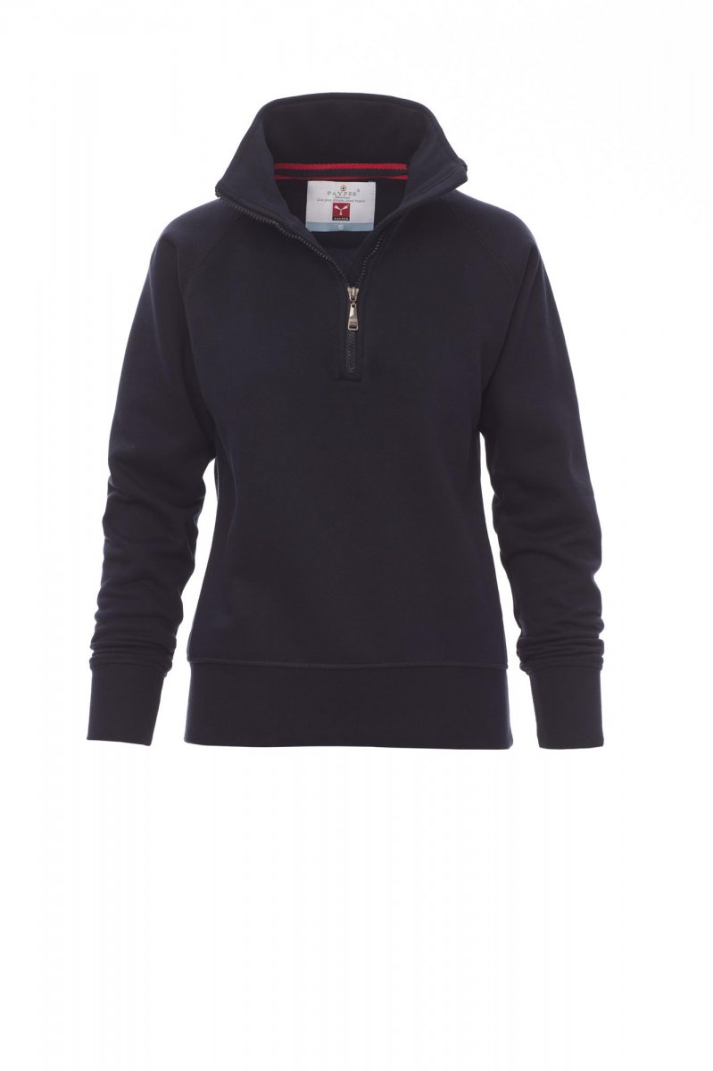 Women’s sweatshirt, with matching half zip in plastic with metal pull, raglan sleeves, stretch rib cuffs and hem, reinforced seams.