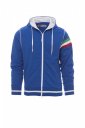 Men’s hoodie with full, contrasting plastic zip with double metal pull. Contrasting hood and drawstring, contrasting stretch rib cuffs and hem, contrasting cuff piping, trim (colours of the flag) on the left sleeve, 2 pockets with zip, reinforced seams and pique type fabric for greater breathability.