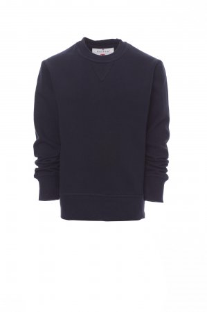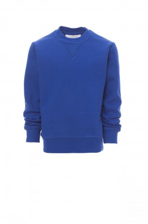 Children’s crew neck sweatshirt, V-design neck stitching, fitted sleeves, stretch rib cuffs and hem, reinforced seams.