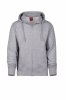 Men’s hoodie with full plastic zip with single customised pull, hood, matching colour drawstring and stitching, fitted sleeves, kangaroo pockets, stretch rib cuffs and hem. Reinforced seams, matching inner neck tape reinforcement.