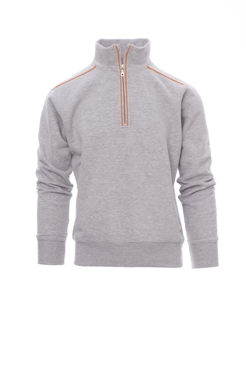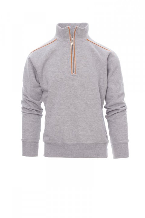 Sweatshirt with half zip in plastic with metal pull, contrasting trim on the shoulders, zip edge and back. Two zip pockets, stretch rib cuffs and hem