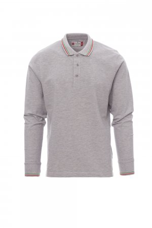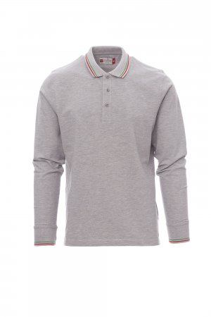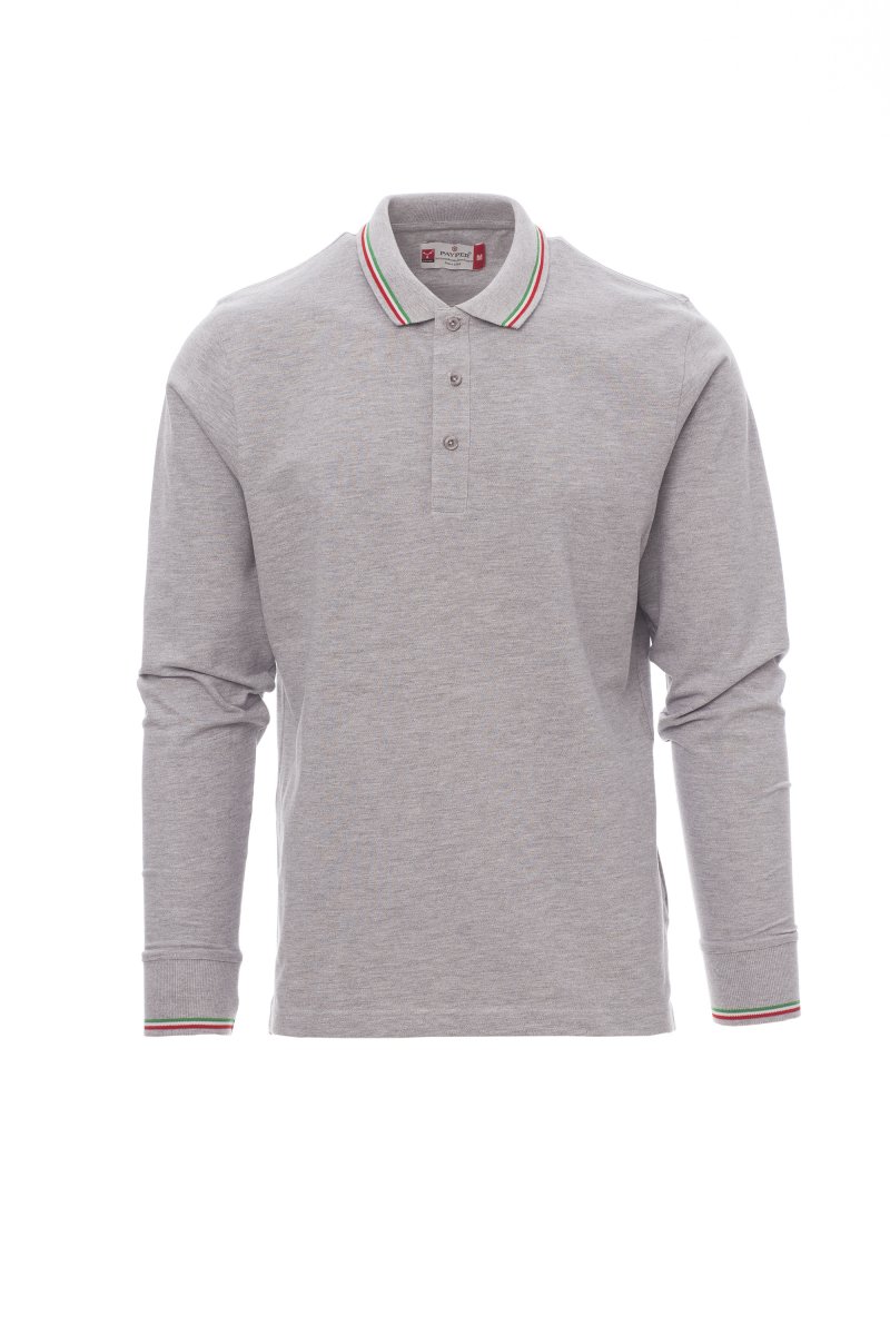 Unisex long-sleeved polo shirt with 3 matching buttons, collar and sleeve trim (colours of the flag), rib collar and cuffs, side vents, concealed collar stitching, side reinforcement tape, inner neck tape