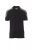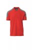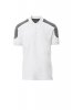 Short-sleeved two-tone polo shirt with 3 matching buttons, breast pocket with pen holder, rib sleeve edging, side vents, concealed collar stitching.