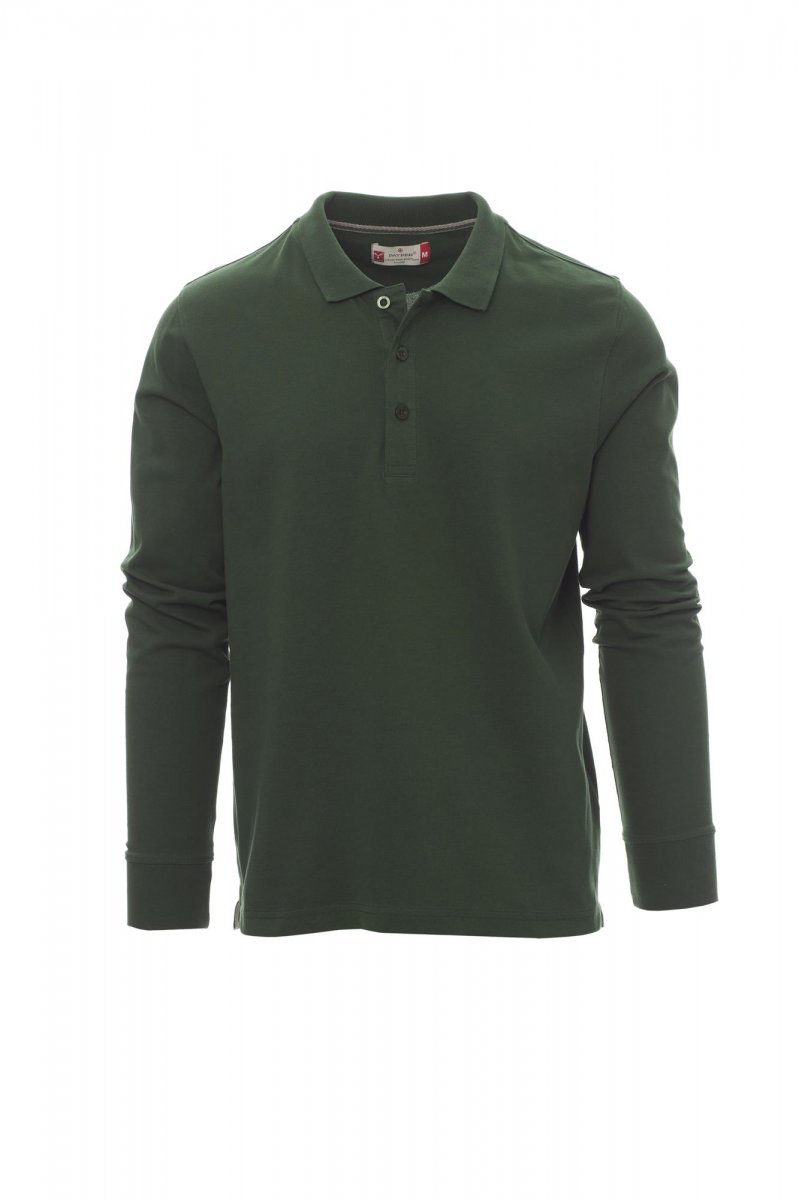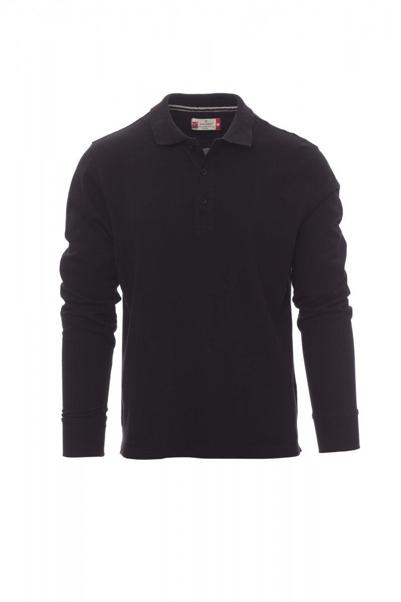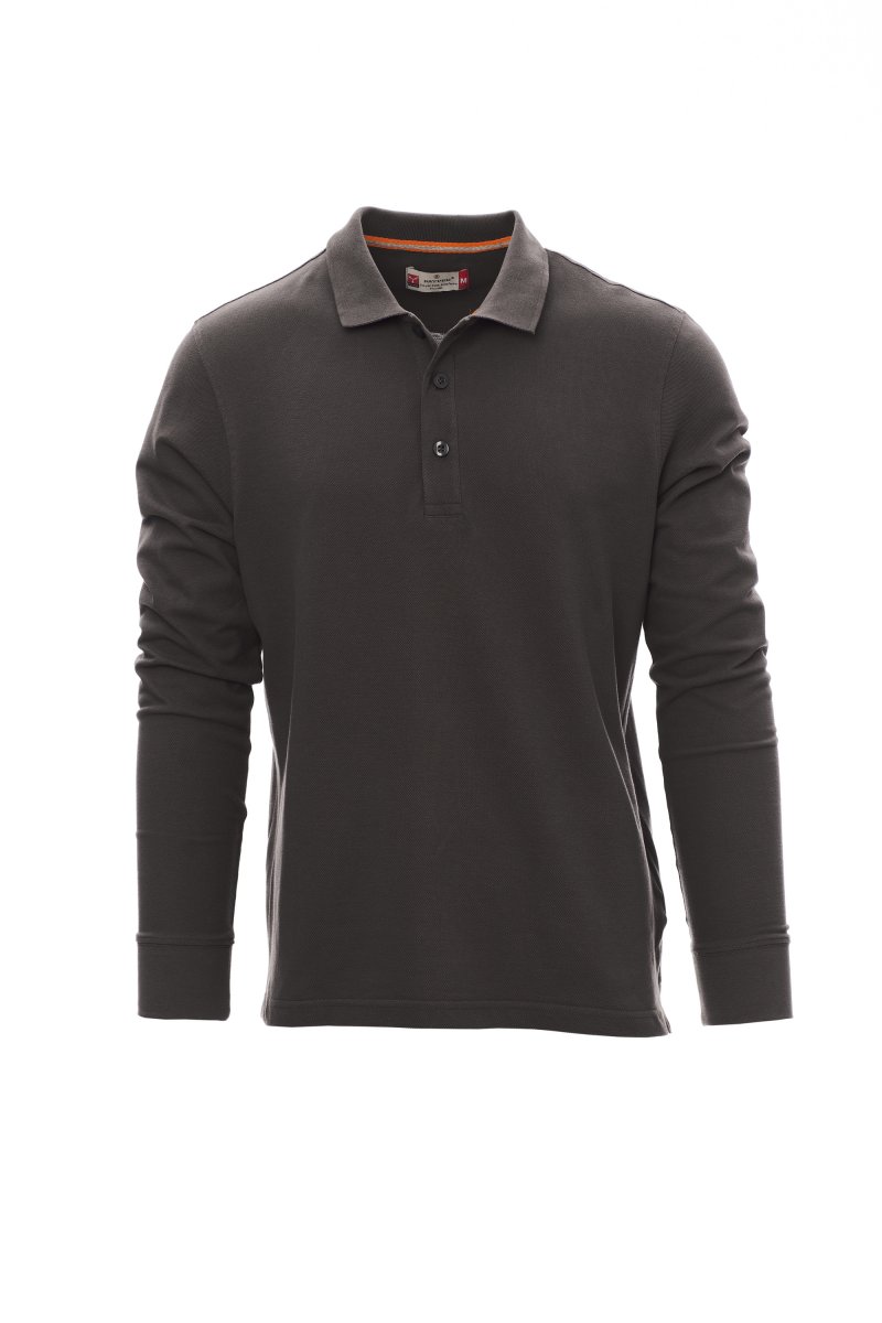Men’s long-sleeved polo shirt with 3, matching, mother-of-pearl effect buttons, rib collar and cuffs, side vents, concealed collar stitching with contrasting tape, stretch seams, side reinforcement tape, inner neck tape.