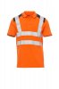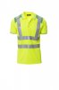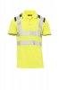 Men’s short-sleeved two-tone, high-visibility polo shirt with reflective stripes, with three, matching, mother-of-pearl effect buttons, contrasting fine rib collar and sleeve edging, side vents, concealed collar stitching.