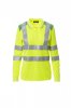 Women's long-sleeved two-tone, high visibility polo shirt with reflective stripes, with 4 matching, mother-of-pearl effect buttons, contrasting fine rib collar and sleeve edging, side vents, concealed collar stitching.
