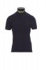 Men’s short-sleeved polo shirt with 3, matching, mother-of-pearl effect buttons, collar with contrasting stripes and fluorescent stripes on the underside, rib collar and sleeve edging, right sleeve with insert, side vents and concealed collar stitching with fluo tape, transfer label.